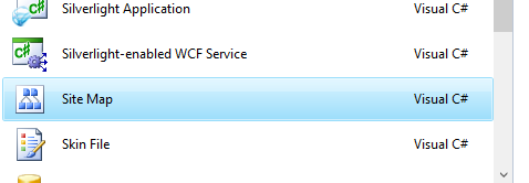 Projeye Add New Item ile Site Map dosyası ekleyelim.